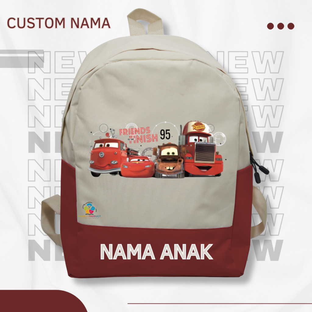 Tas Ransel Backpack Anak Disnep Cars - Tas backpack Sekolah Anak SD TK (FREE NAMA)