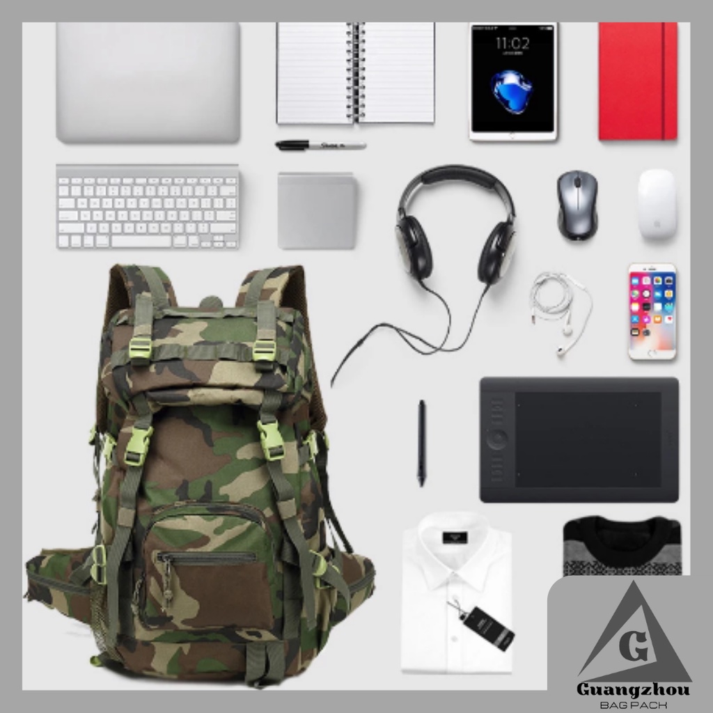 Tas Ransel Gunung 50l - Backpack Punggung Tas Gunung Hiking Carrier Loreng Kapasitas Besar