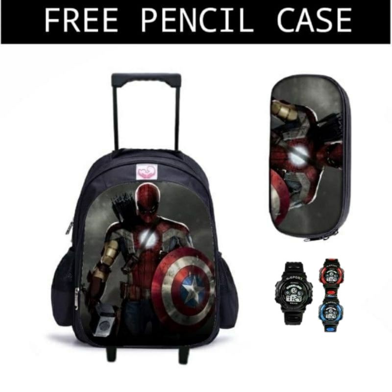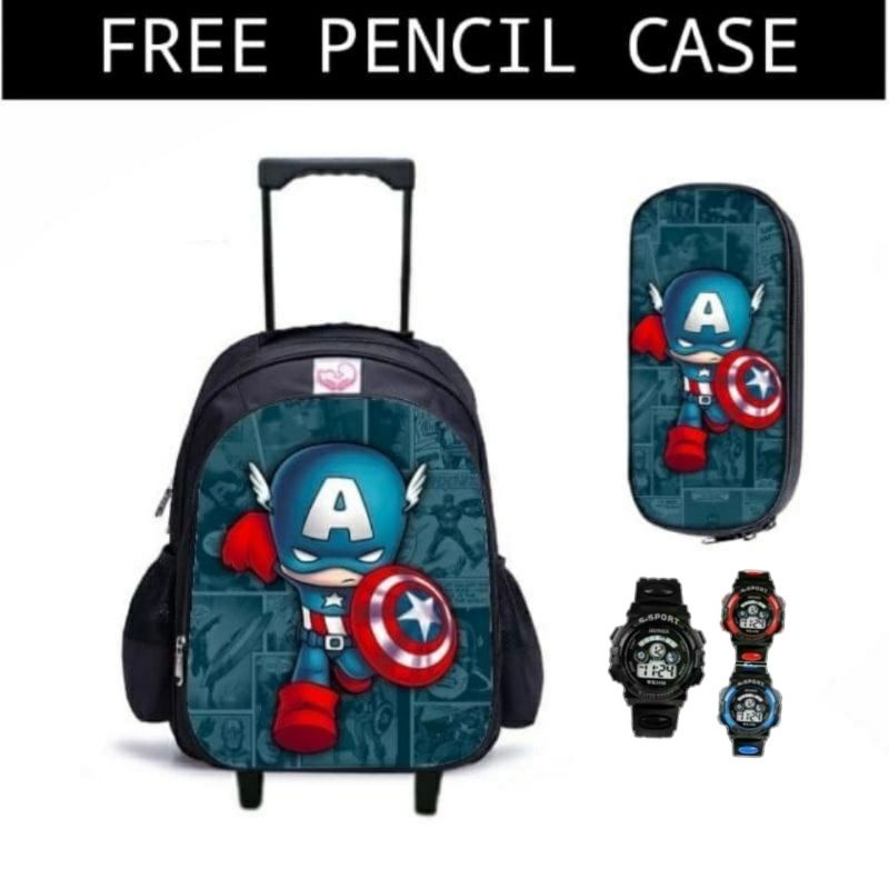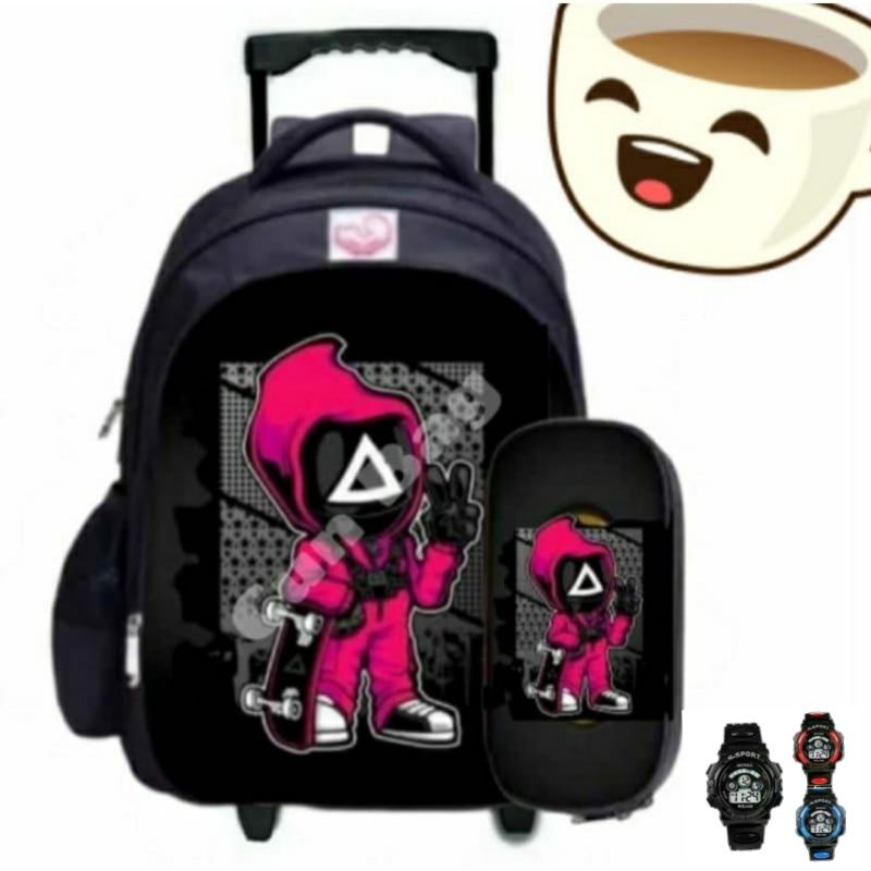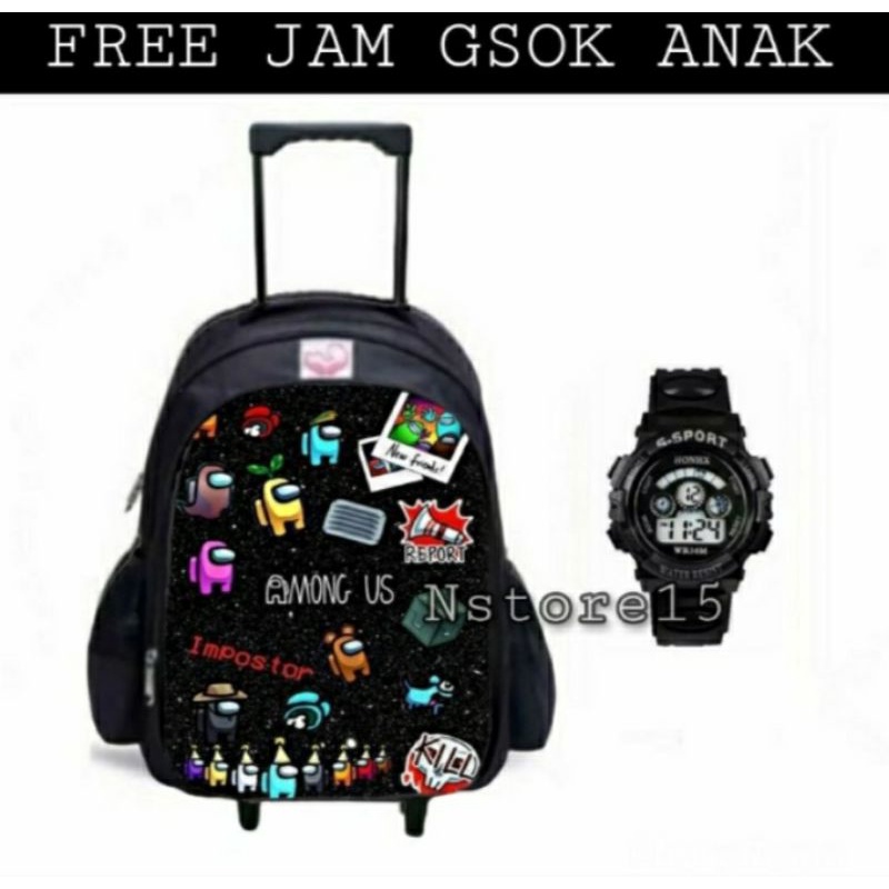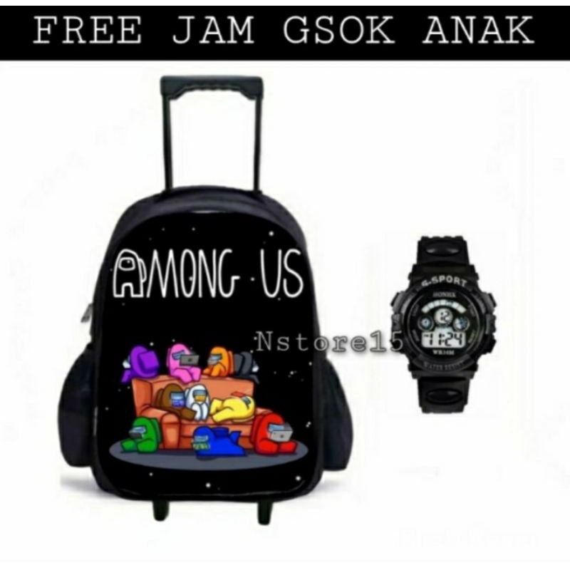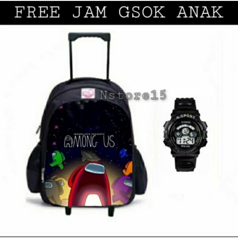 Tas Ransel Troly Karakter Roblok/Amoung US bonus jam tangan terpopuler Ransel anak dorong Roda