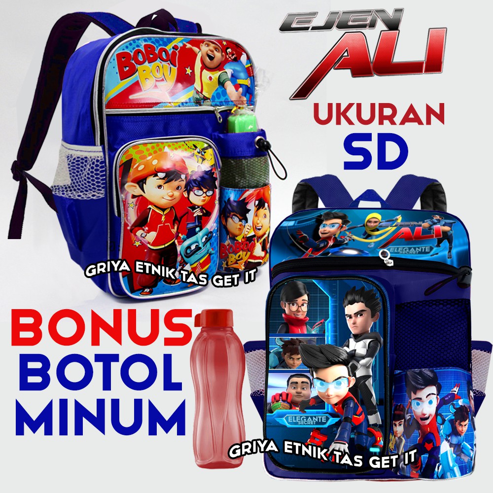 Tas Sekolah Anak SD EJEN ALI Boboiboy GRATIS BOTOL MINUM Ransel Anak Cowok