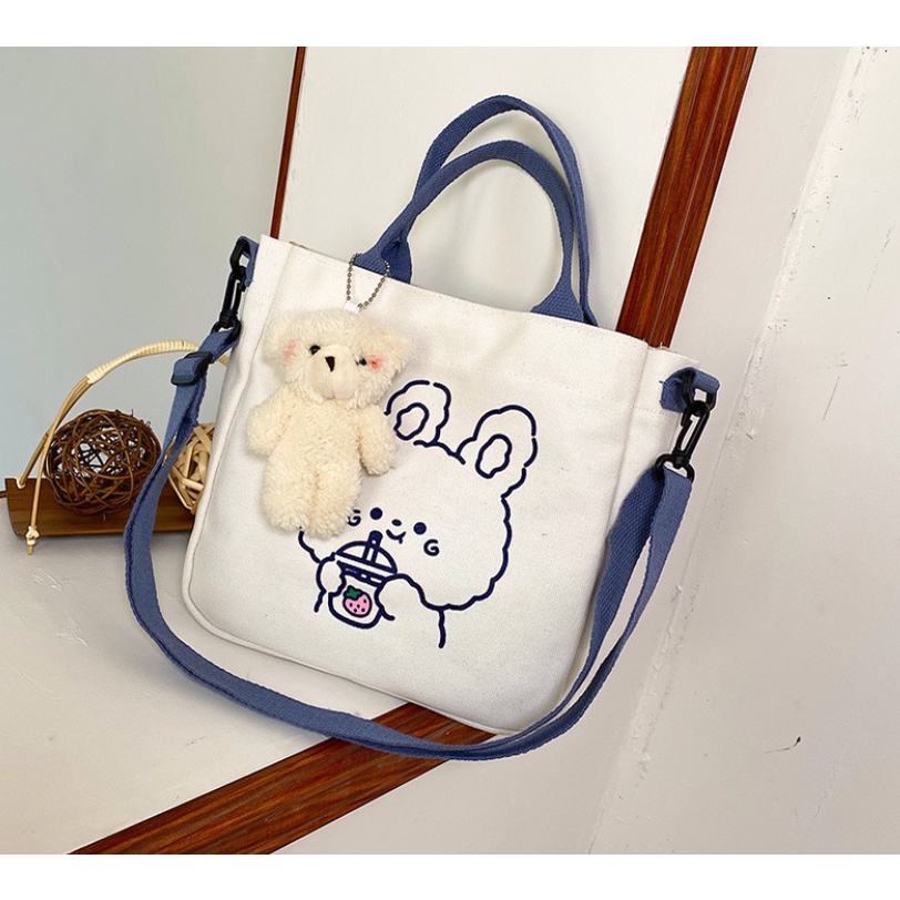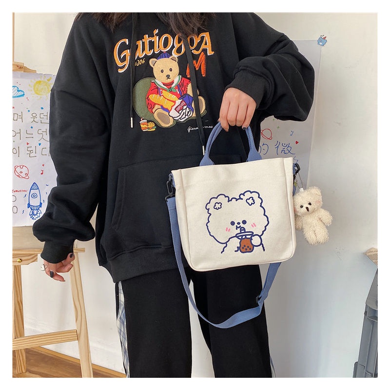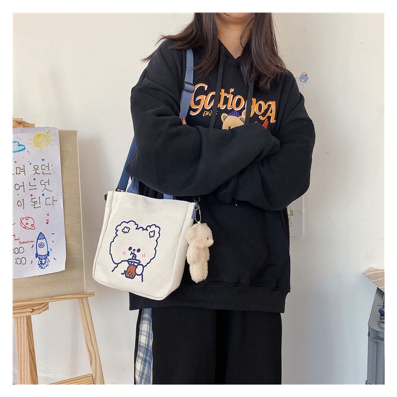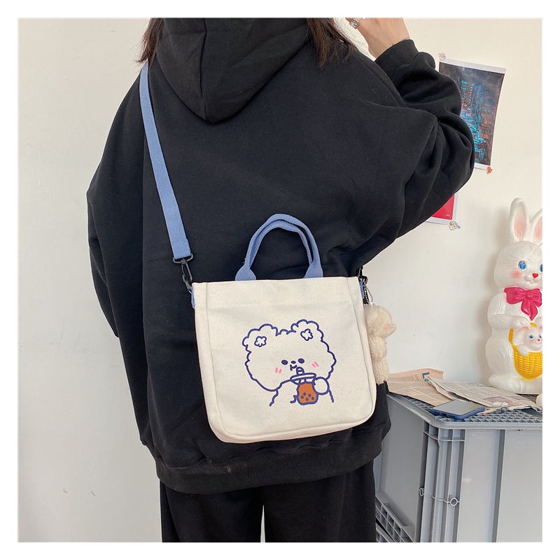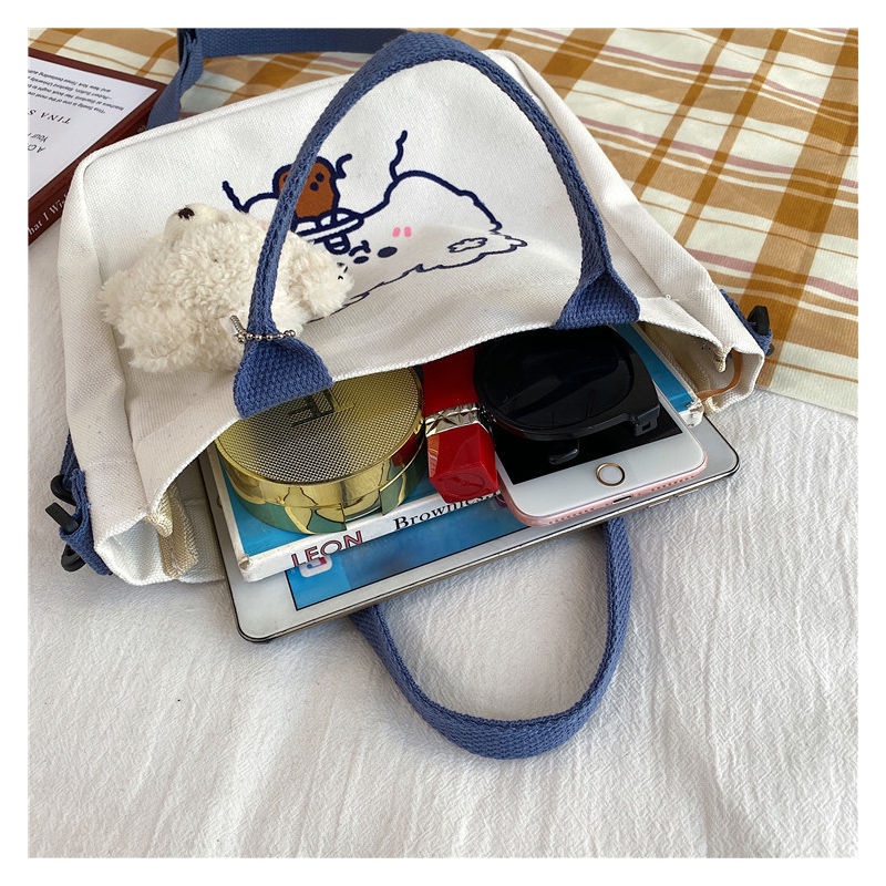 Tas Selempang / Bahu Wanita Motif Jepang Bahan Canvas Cantik Lucu Imut
