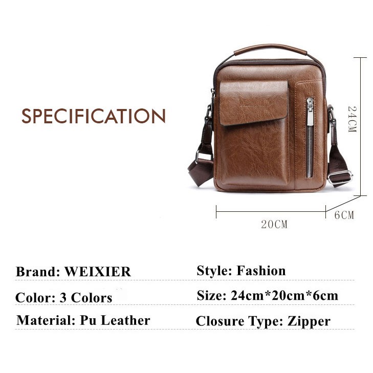 Tas Selempang Pria Kulit Messenger Sling Bag PU Leather Jeff Terbaru Tas Slempang Cowok Kerja