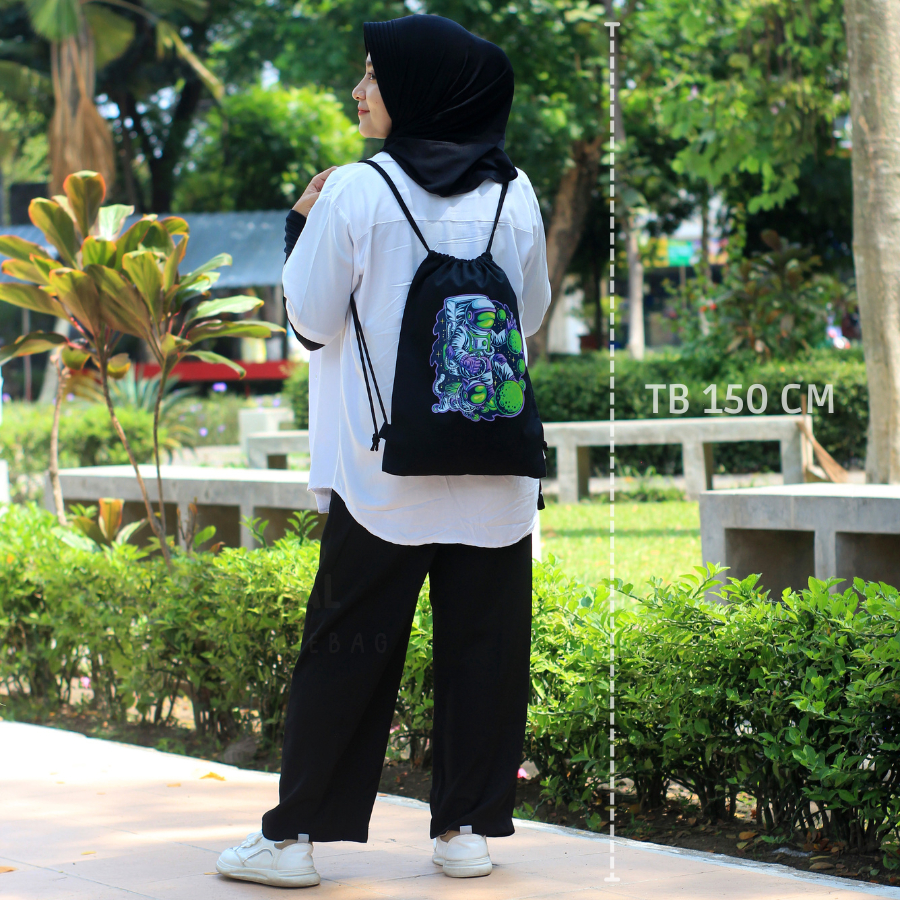 Tas Serut Alien String Bag Astronaut Kanvas Twill Hitam Tebal