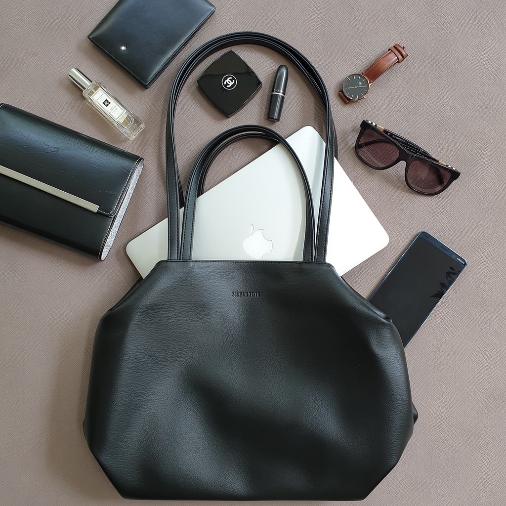 Ivonne Bag - Silvertote - TAS WANITA - TOTE BAG - SHOULDER BAG - SLING BAG - TAS KERJA - TAS KULIAH - TAS LAPOTOP 14INCH - BLACK