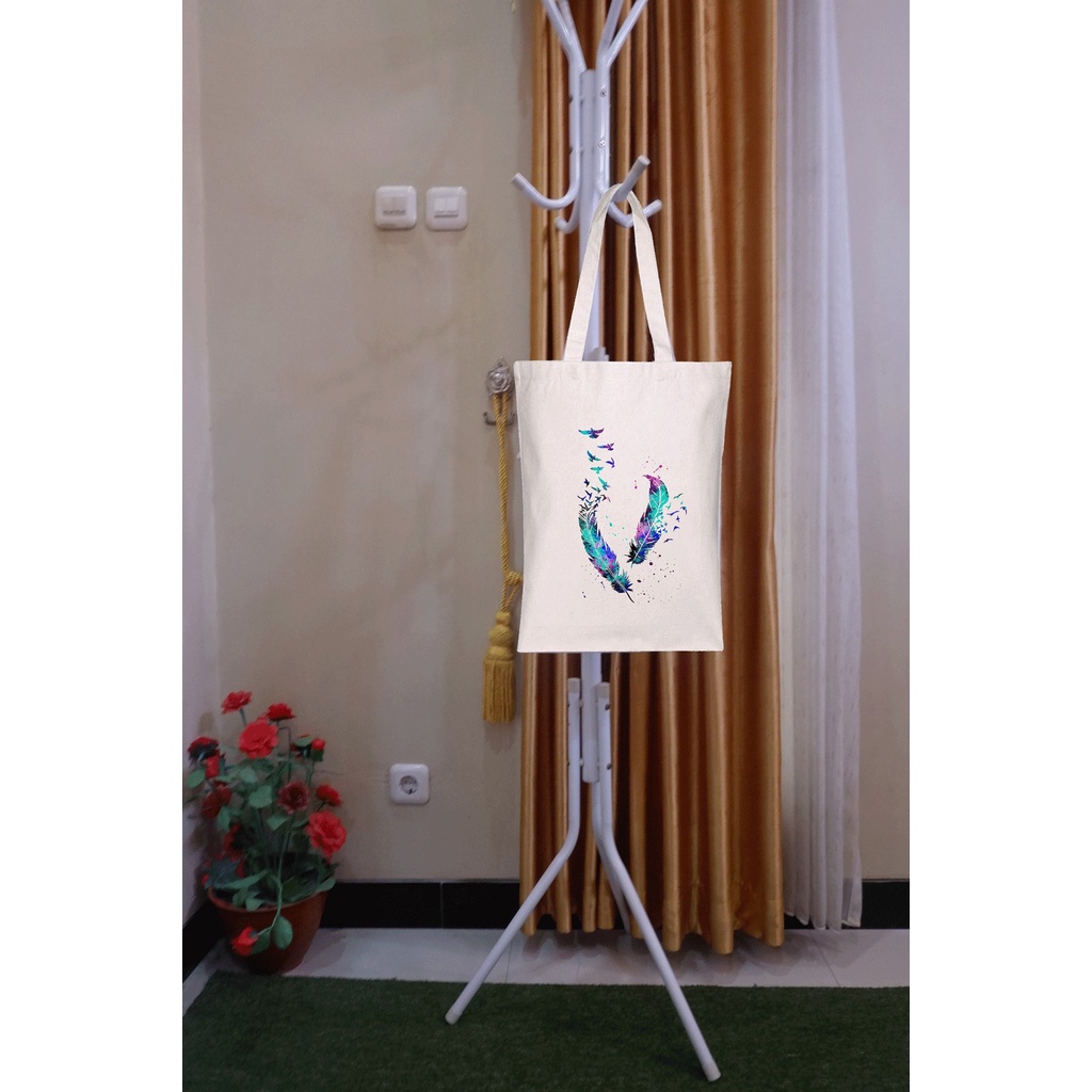 Tas Totebag Aesthetic Tote Bag Kanvas Putih Estetik Tas Wanita Laptop Keren Kuat Murah