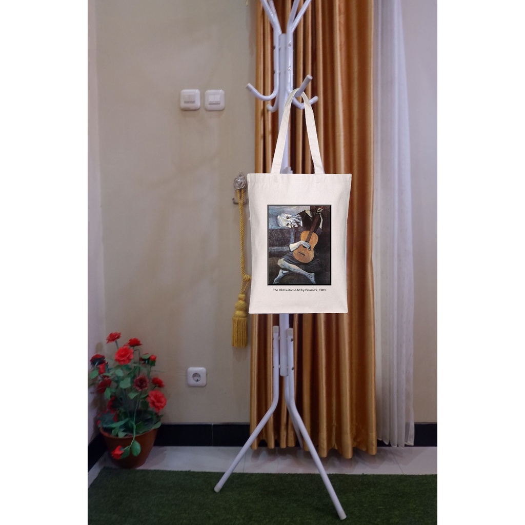 Tas Totebag Putih Tote Bag Estetik Bahan Kanvas Tas Tote Wanita Keren Laptop Motif Lukisan