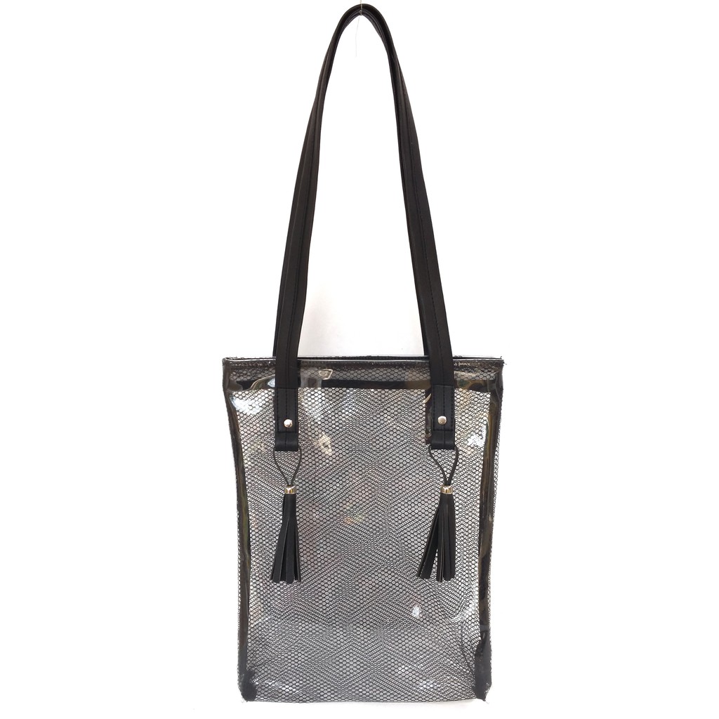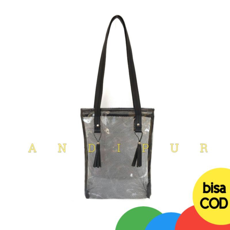 Tas Jinjing Transparan Wanita – Tote Bag Fashion Elegan Bahan Mika + Aksen Tali Kulit dan Rumbai