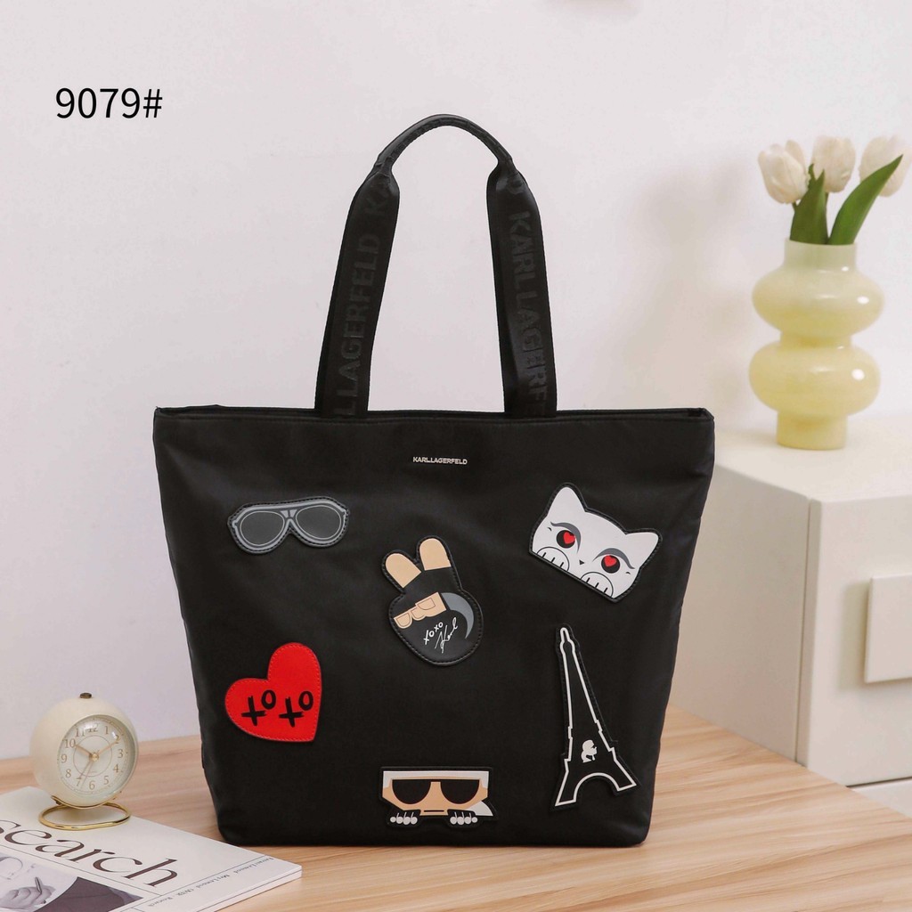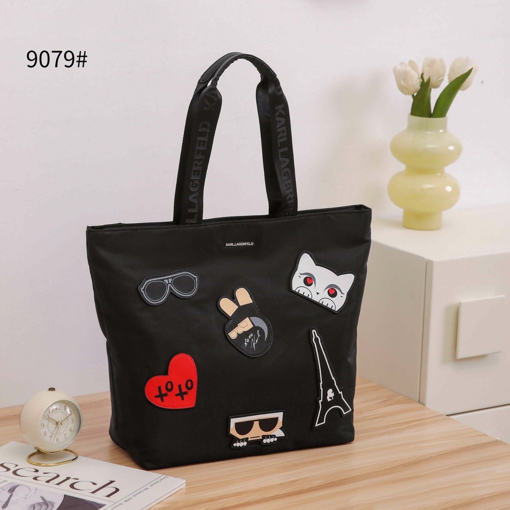 Tas Wanita #9079 Tote Bag Bahan Canvas Nylon Semi Platinum Branded Import