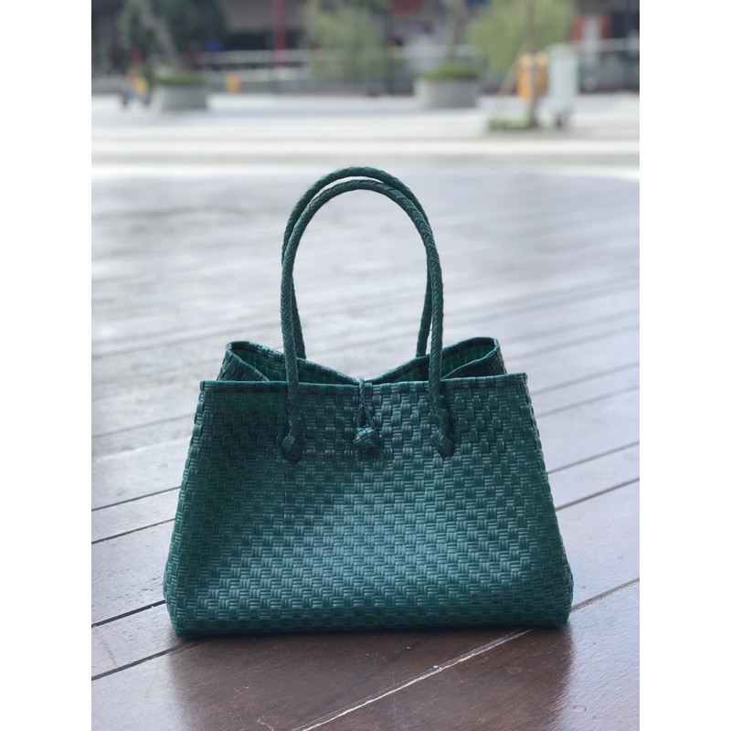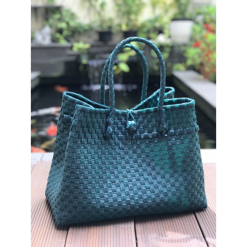 Tas Wanita Bakul/Tas Anyaman/Tas Jali- ukuran XL Lebar - emerald - Buatan Indonesia