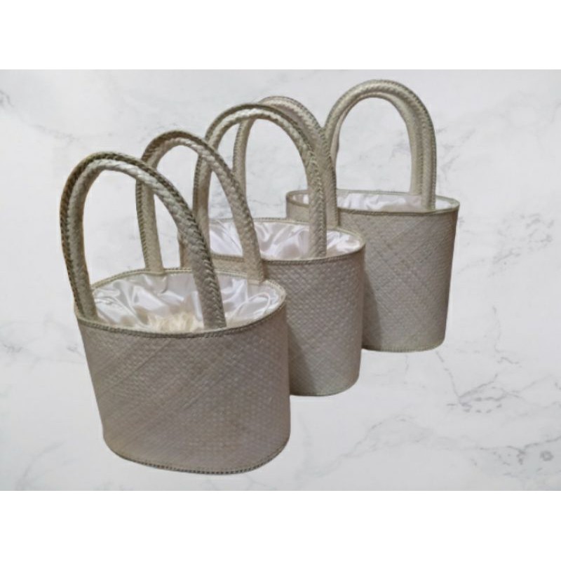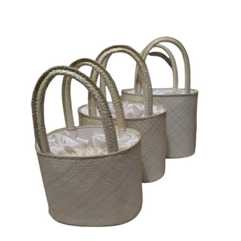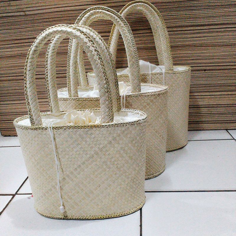 Tas anyaman pandan set 3/tas piknik pandan oval Tali Serut set 3/tas mukena anyaman pandan polos