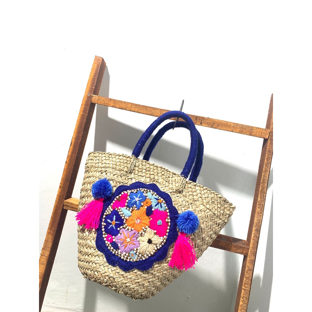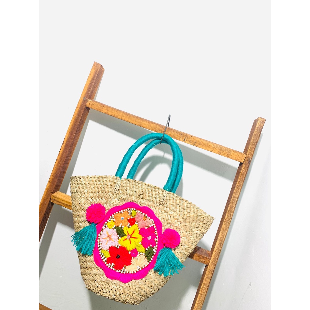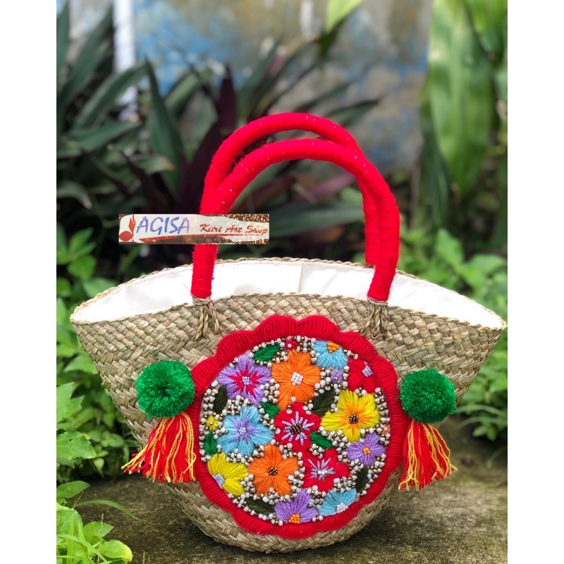 Tas bangkok/tas anyaman hias/tas anyaman bali/oleh oleh bali/tas rotan/tas pompom/tas rajut/tas