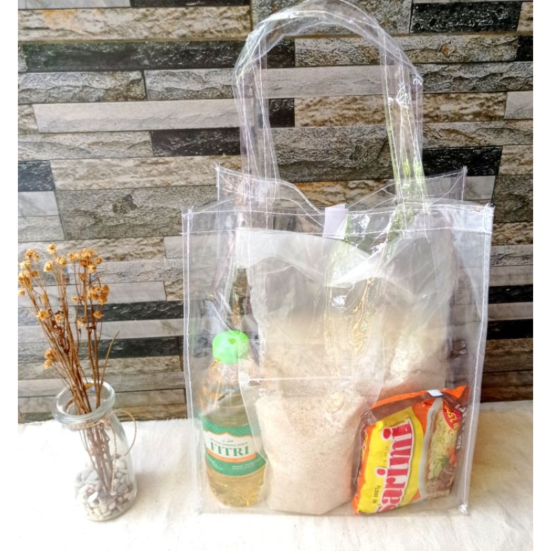 Tas hampers sembako mika transparan , tas hajatan mika bening tebal P25xL13xT30
