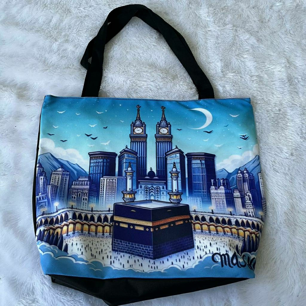 Tas oleh oleh haji | tote bag mekkah | tas mekkah | tas madinah | tas umroh | tas haji | tas gambar kakbah | tas gambar madinah | totebag mekkah | tote bag mekkah | totebag madinah | tas jinjing mekkah | tas jinjing madinah | tas khas mekkah madinah