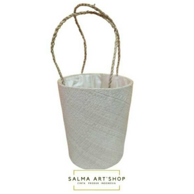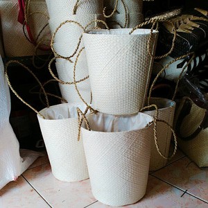 Tas anyaman pandan Ember polos/tas parsel pandan tali serut/tas hampers lebaran anyaman pandan