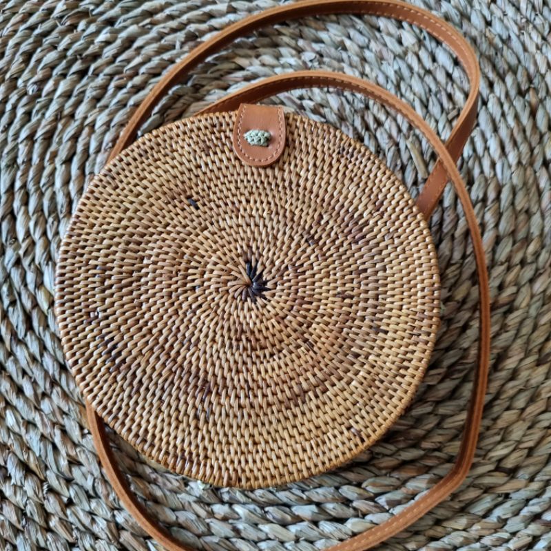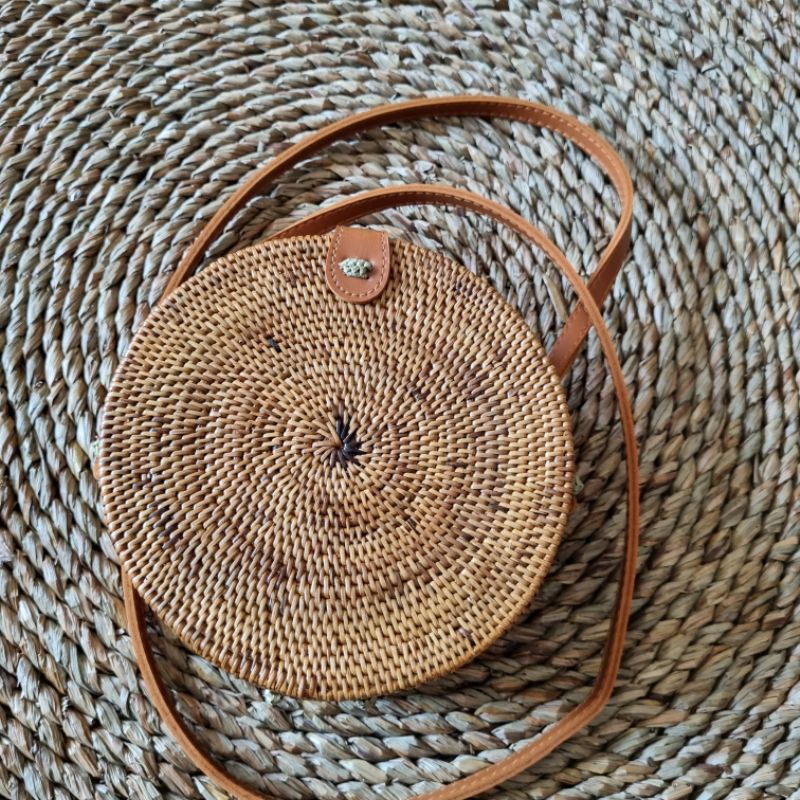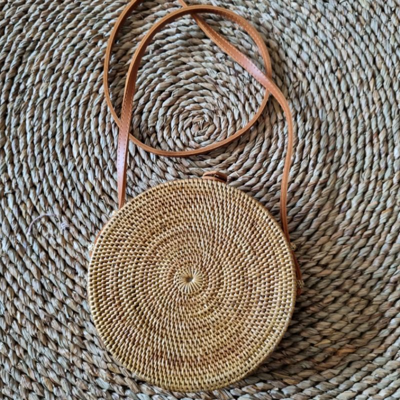 Tas rotan bulat/ Tas rotan bulat bali/ Tas rotan bulat murah/ tas bulat rotan selempang/ Tas rotan bulat jogja