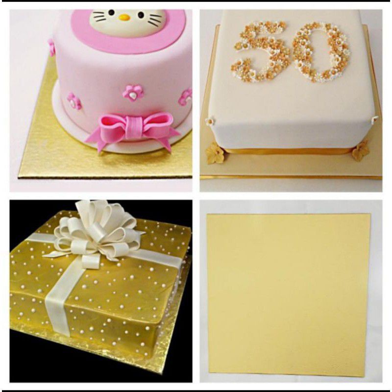 Tatakan Kue Tart/Tatakan Snack Cake/Alas Kue Gold Premium/Hardcover Square Gold Glossy uk 18-40 cm
