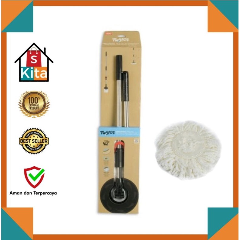 Tatay Alat Pel Bergagang - Hitam Krom/pelan/alat ngepel/kain pel
