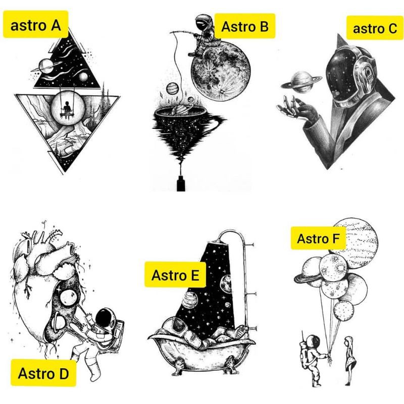 Tato Basic Tahan 5-7 Hari Tato Temporer Astronaut Tato Astronot Antariksawan luar angkasa Stiker Tato Minimalis - ASTRO