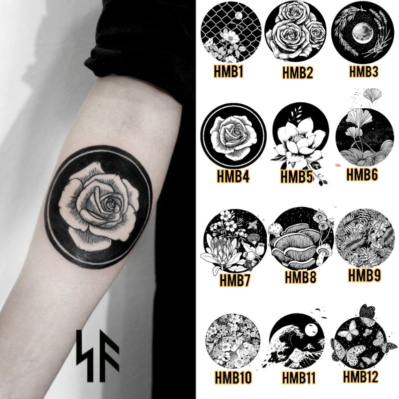 Tato Basic Tahan 5-7 Hari Tato Temporer Bunga Hitam Flower Tato simple Tato lingkaran Stiker Tato Minimalis - HMB