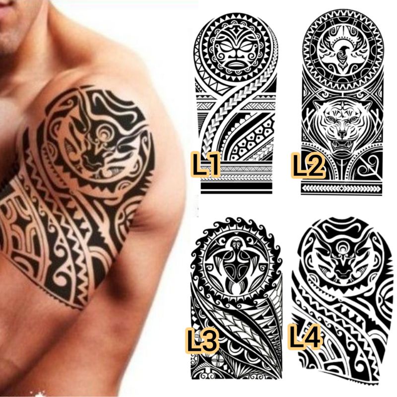 Tato Basic Tahan 5-7 Hari Tato Temporer Tribal Tato simple pria setengah lengan Stiker Tato Minimalis - L