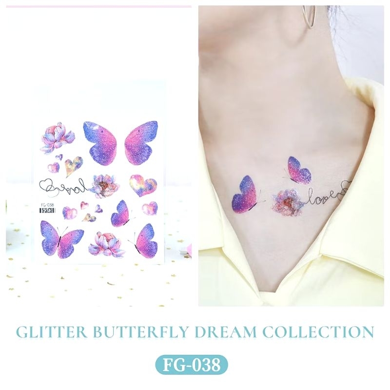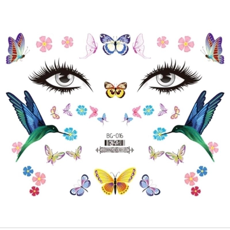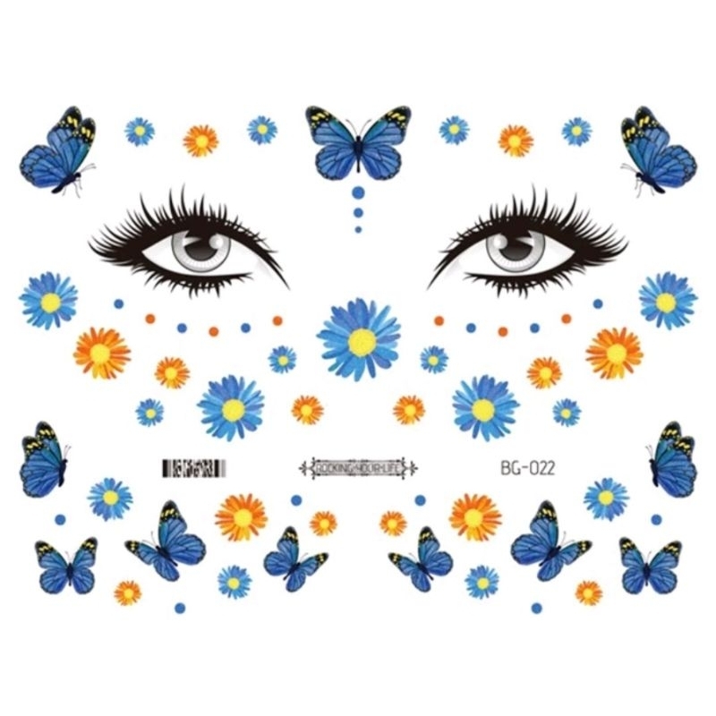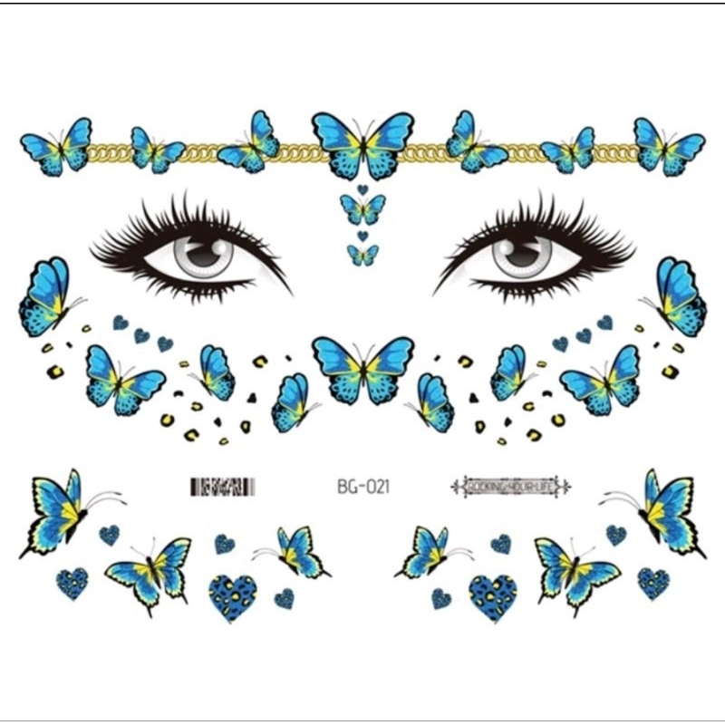 Tato Wajah GLITTER Sticker Muka / Stiker Wajah Pesta / Face Sticker Tatto Temporer 2D Party Tahan Air Festival Musik Studio Kupu-Kupu
