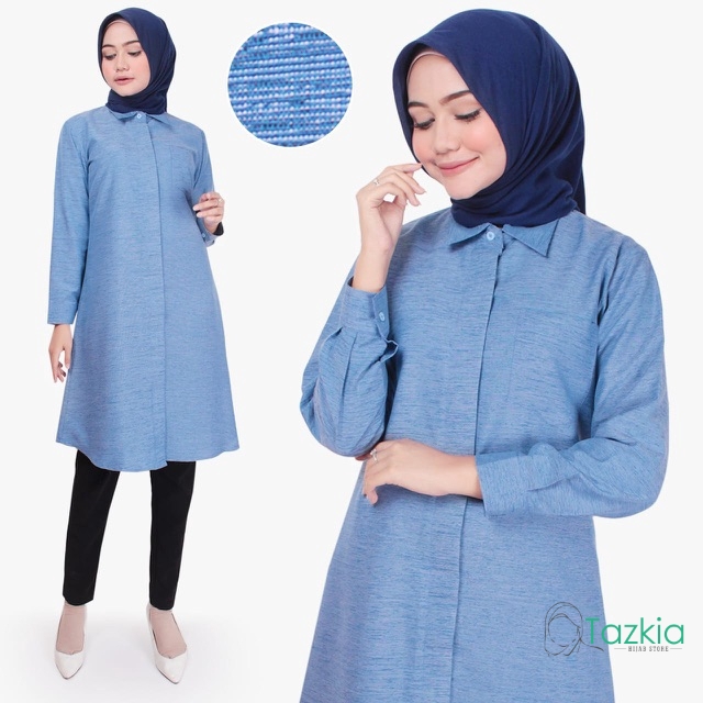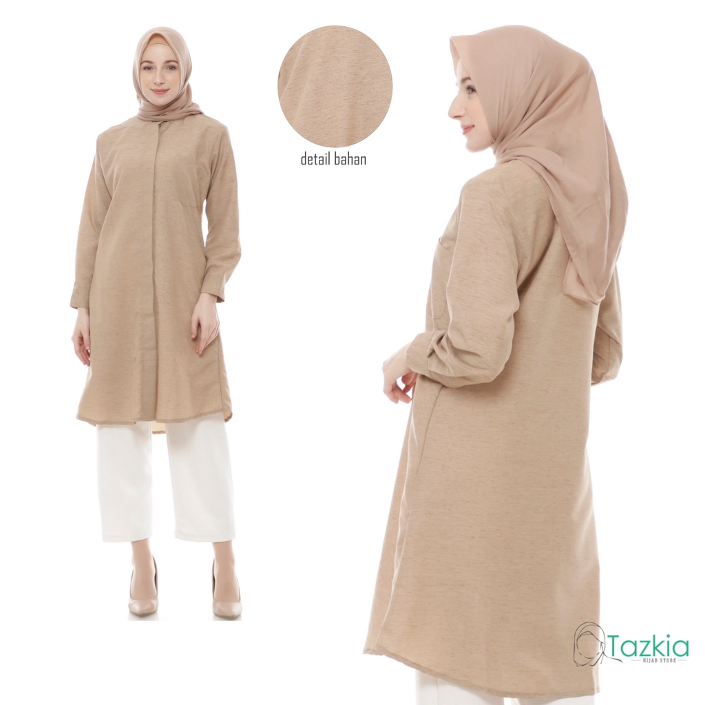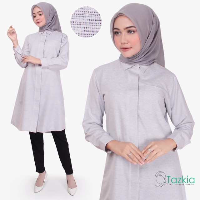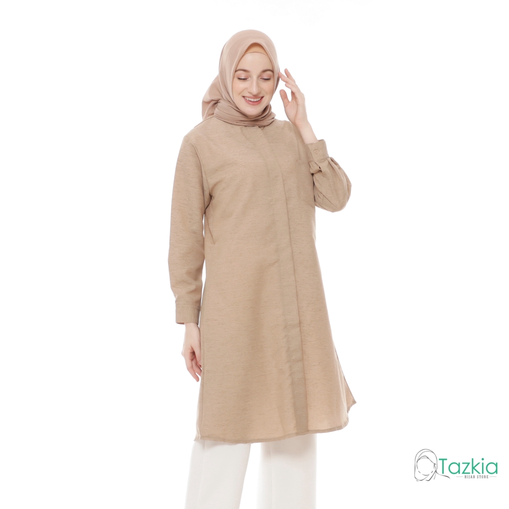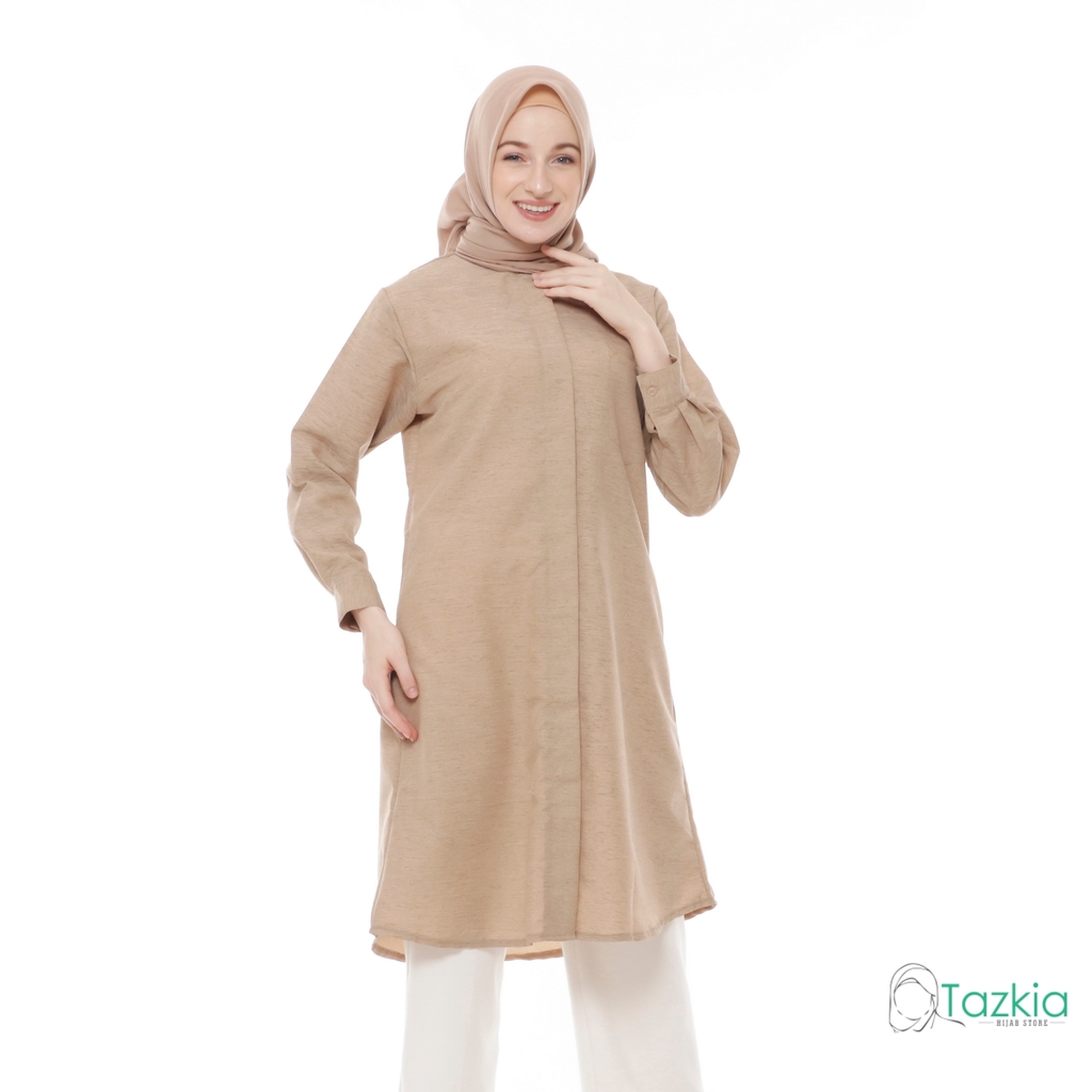 Atasan Muslim Wanita | Tazkia Hijab Store | Omira Tunik | Kemeja Tunik Kancing Linen
