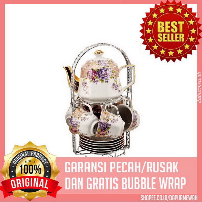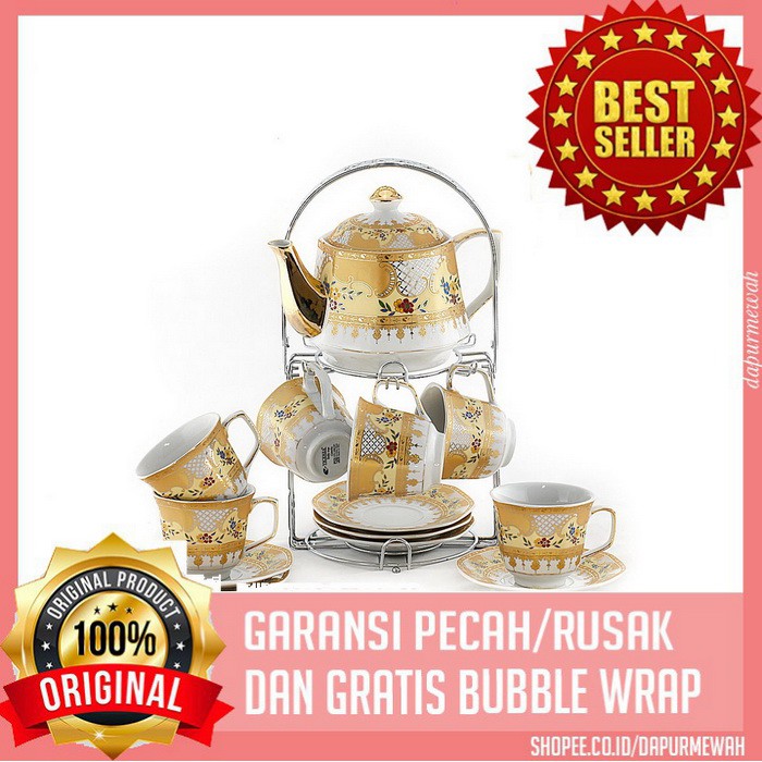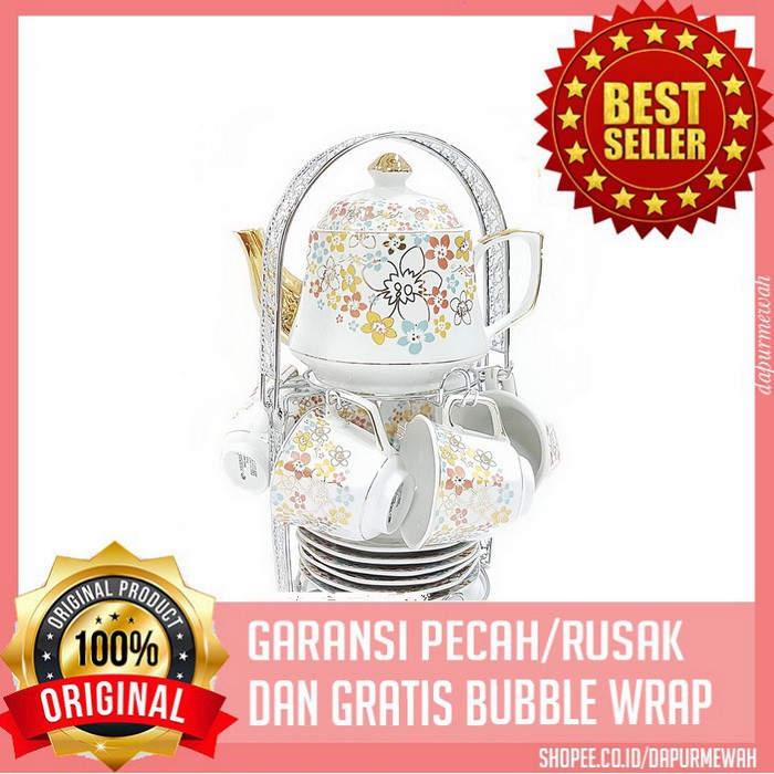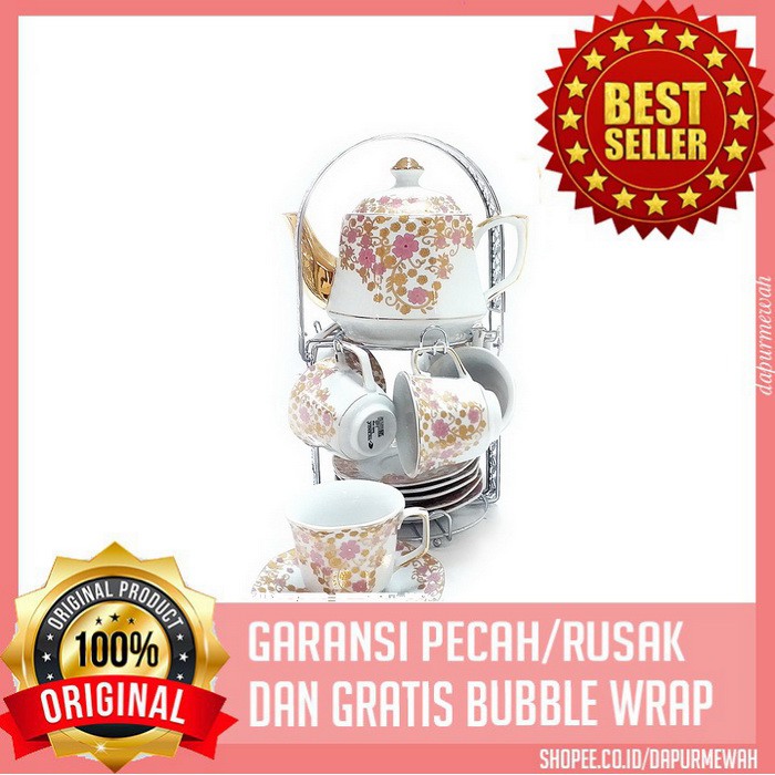 Vicenza Tea Set Ceramic C78 – Set Cangkir + Teko + Tatakan / Set Cangkir Teh & Kopi Elegan / Original Vicenza