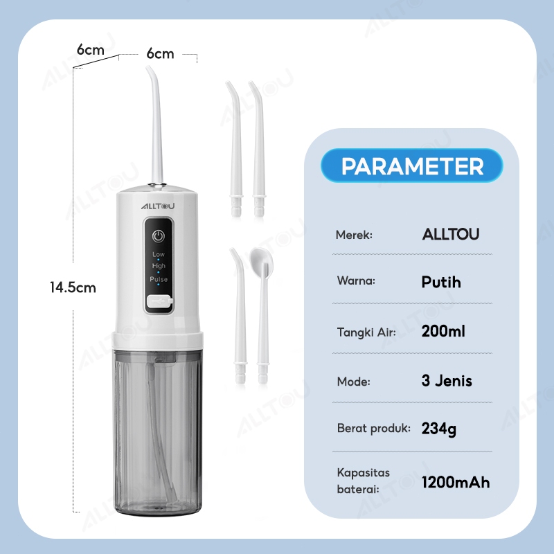 ALLTOU Water Flosser Portable Dental Floss Semprotan Gigi Elektrik Oral Irrigator USB Pembersih Gigi