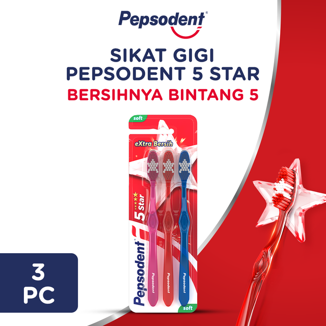 Pepsodent Sikat Gigi 5 Star Bersihnya Bintang 5 Isi 3