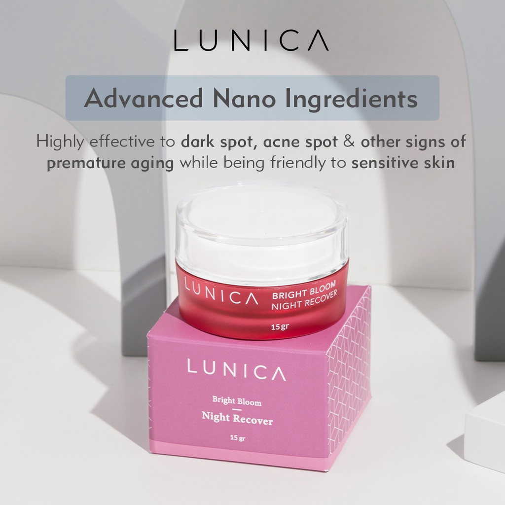 Advanced Nano Cream LUNICA Bright Bloom - Night Recover Bantu Menghilangkan Flek Hitam, Melasma, Bekas Jerawat Night Cream BPOM Krim Malam Pemutih Wajah Penghilang Flek Hitam Glowing Ampuh