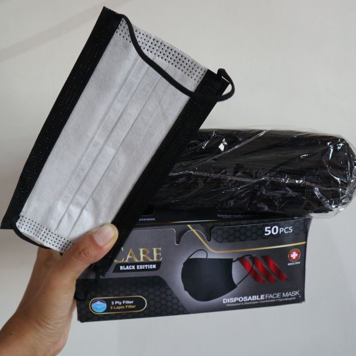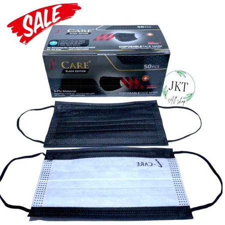 [GROSIR] MASKER EARLOOP ICARE HITAM BLACKWHITE BOX ISI 50PCS 3PLY PREMIUM IZIN KEMENKES TERBARU