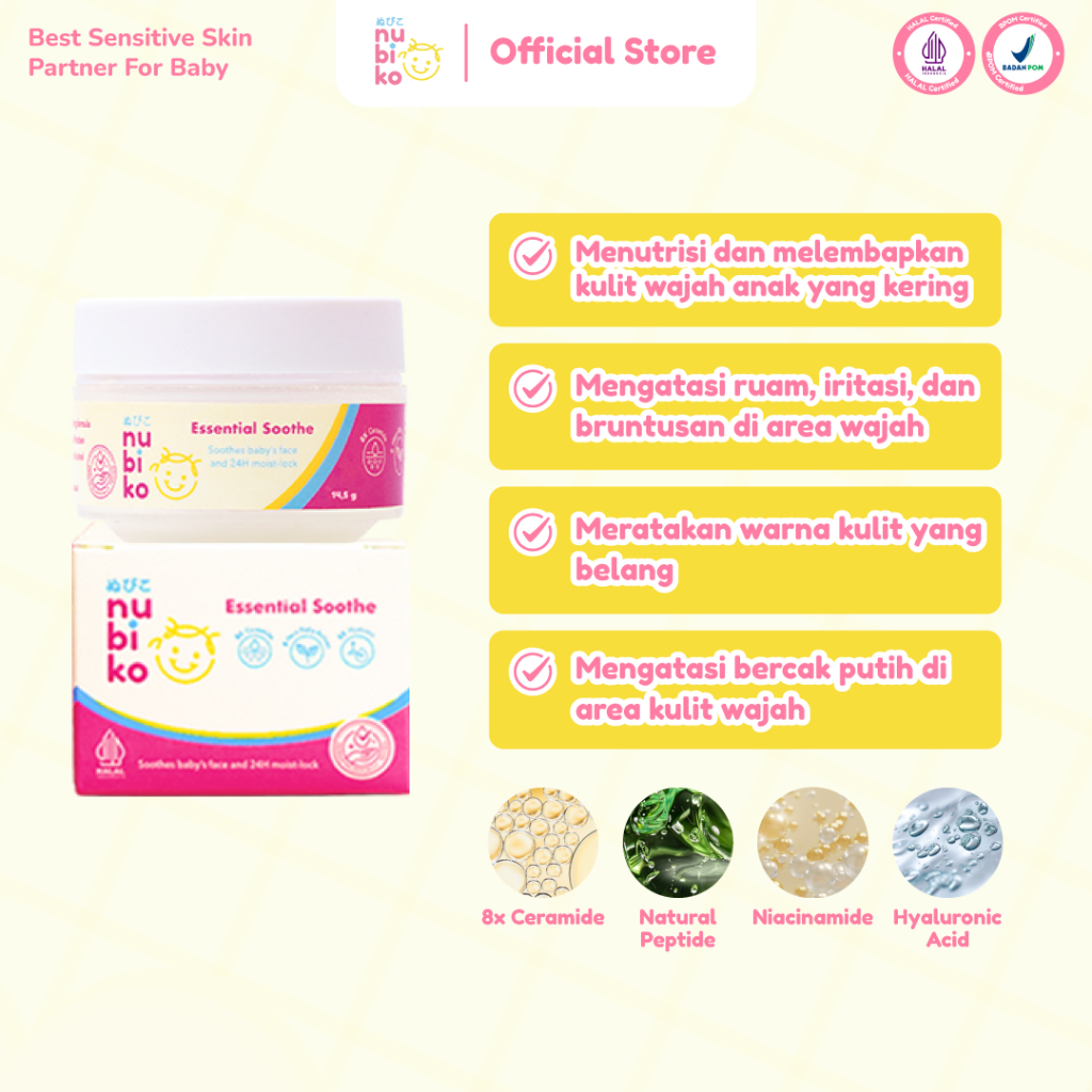 Nubiko Essential Soothe 14,5gr dengan 8x Ceramide Niacinamide Microbiome Moisturizer Face Cream Anak