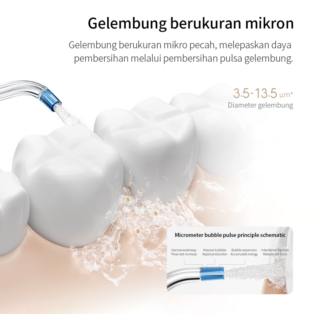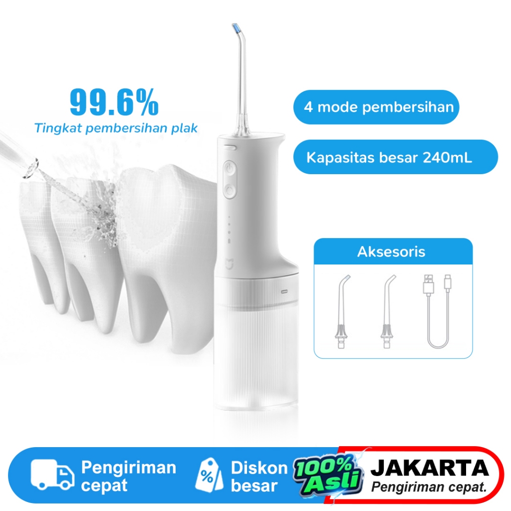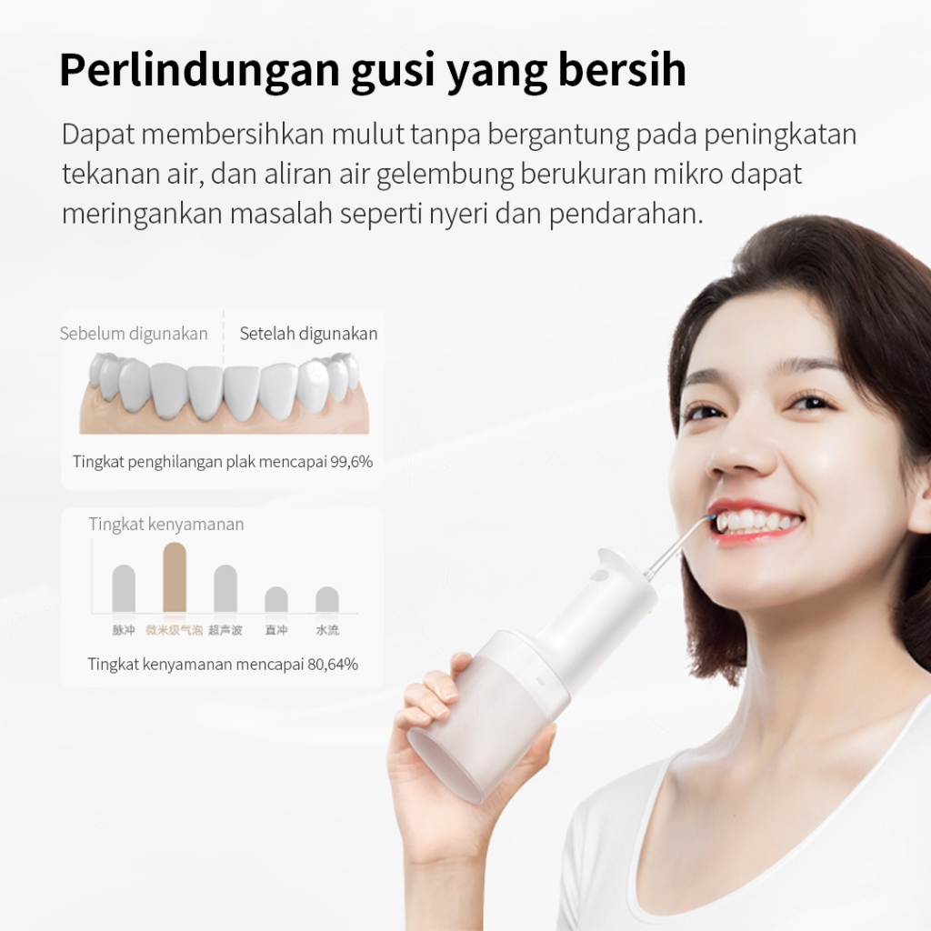 Mijia Electric Water Flosser 2, Pembersih Gigi dengan Teknologi Mikro Bubble, Desain Portabel, 4 Mode Pembersihan, Cocok untuk Kesehatan Gigi & Gusi, Baterai Tahan Lama
