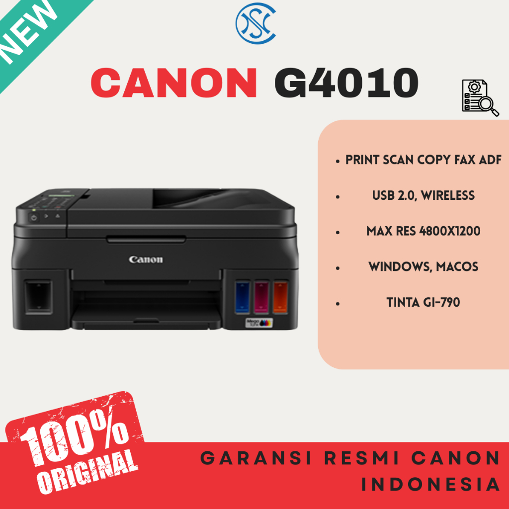 PRINTER CANON WIFI WIRELESS PIXMA INKJET G4010 PRINT SCAN COPY FAX