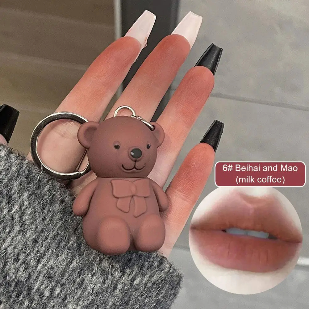 Teddy Bear Keychain Lipstick Gantungan Kunci Lipstick 6 Warna Matte Lipstick Mini Keychain 6 Warna Velvet Matte Lip gloss Korean Lipstick