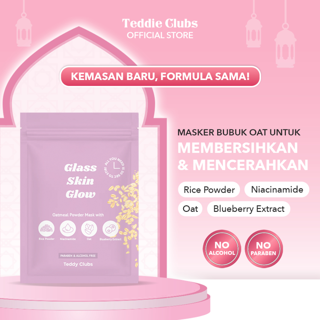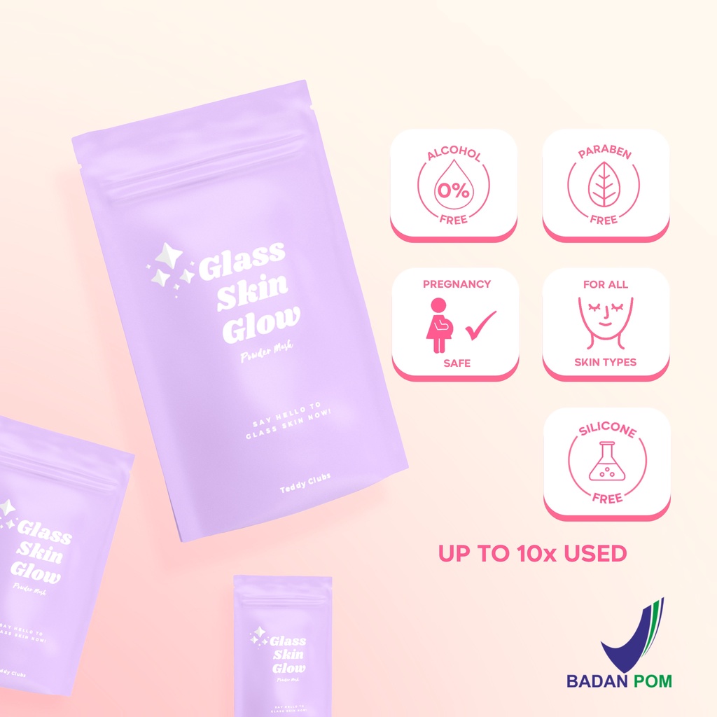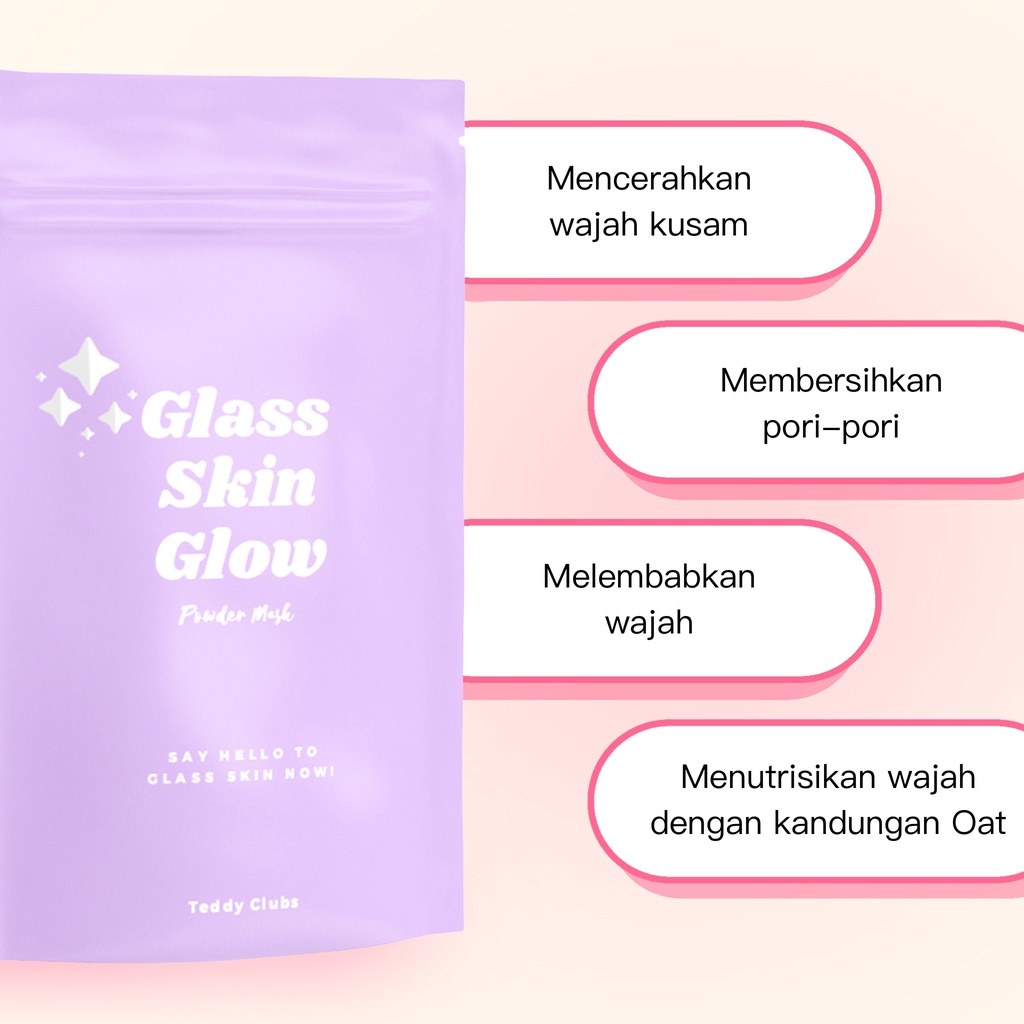Teddy clubs Glass Skin Glow Mask - Masker bubuk U/ Menghaluskan dan Mencerahkan | Powdermask | Masker Bubuk Organik