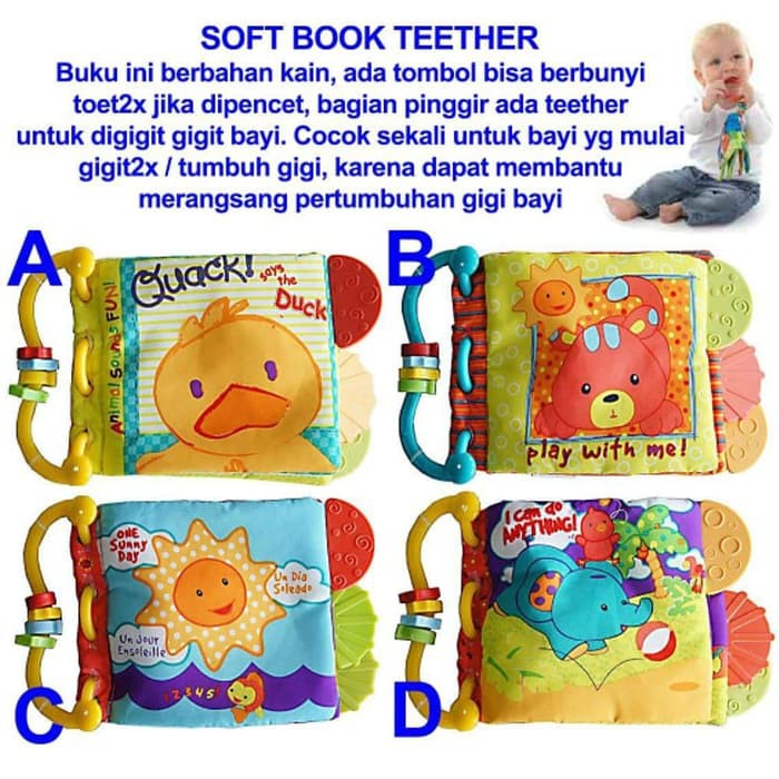 Teether Book Softbook Mainan Gigitan Bayi Soft Book Buku Kain Mainan Edukasi Sensori Babymaniashop
