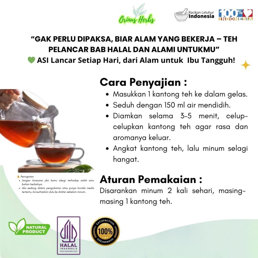 Teh Herbal Lancar Asi Daun Kelor 20 Teabag 80gr Membantu Memperlancar Asi