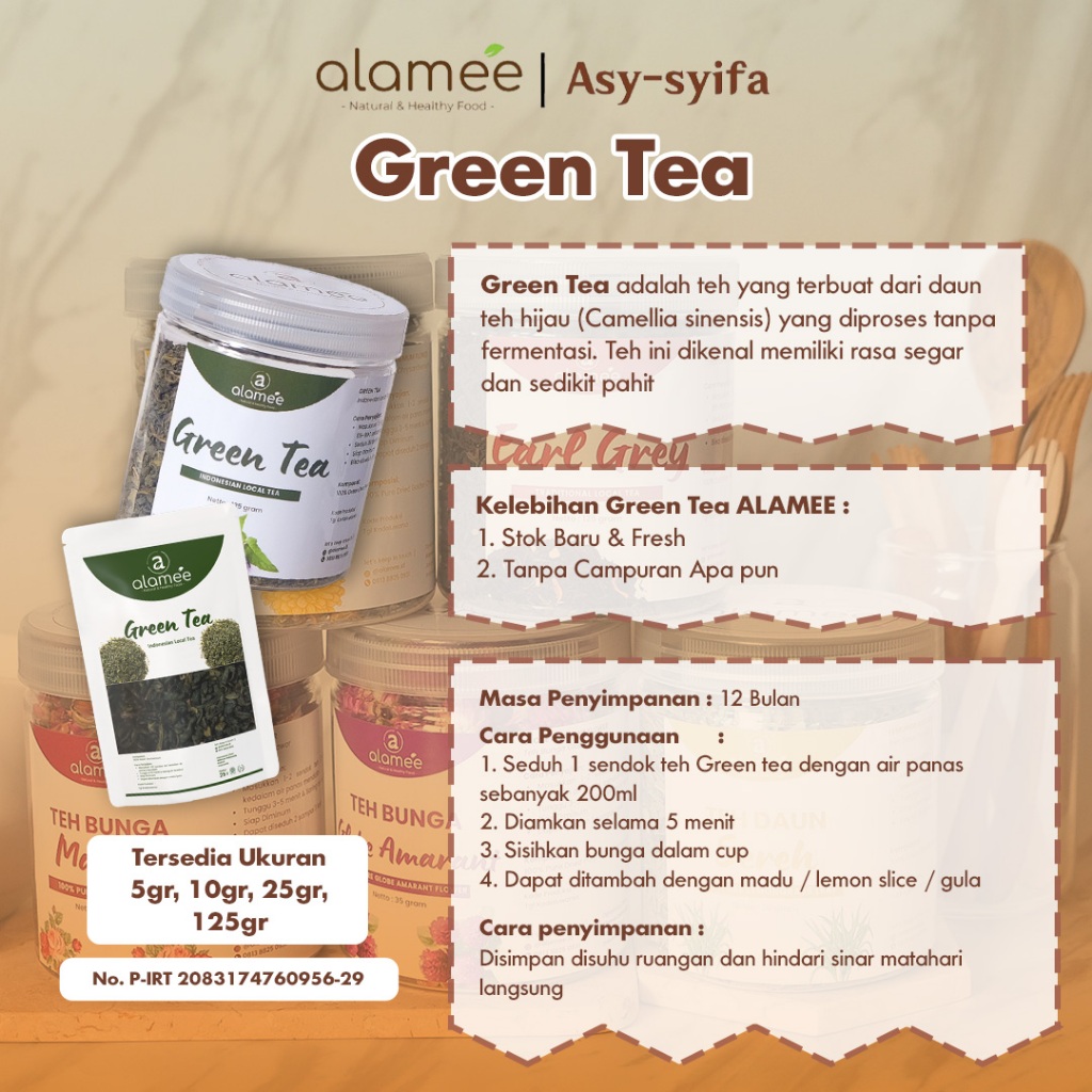 Teh Hijau Green Tea Organic Kering Organik Greentea Minuman Herbal Alami Asli Sehat Siap Minum 25g