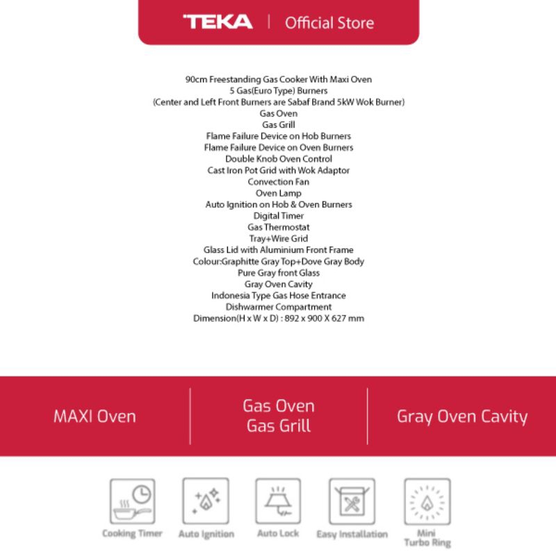 Teka Freestanding Cooker FS 905 Maxi Graphite 90cm Full Oven