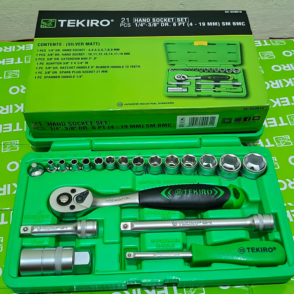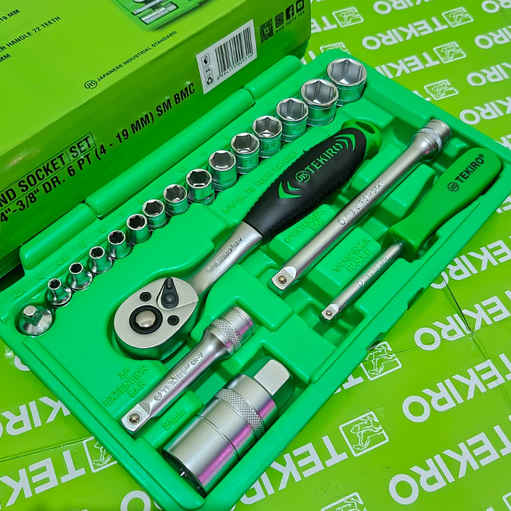 Tekiro Kunci Shock Sock Sok Set 21 Pcs 1/4" - 3/8" Ratchet Ready Kunci Shock Set Tekiro