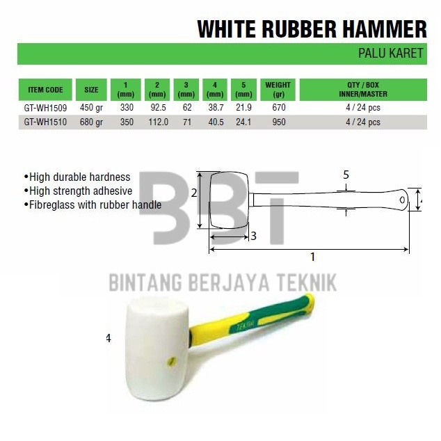 Tekiro Palu Karet 450Gram 16OZ 1LB / Tekiro Palu Keramik Besar / Palu Kaca