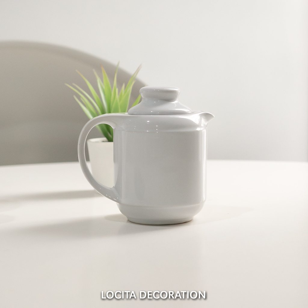 Teko Keramik Putih Polos/Teko Klasik Porcelain untuk susu kopi teh/Teko Mini/Teapot