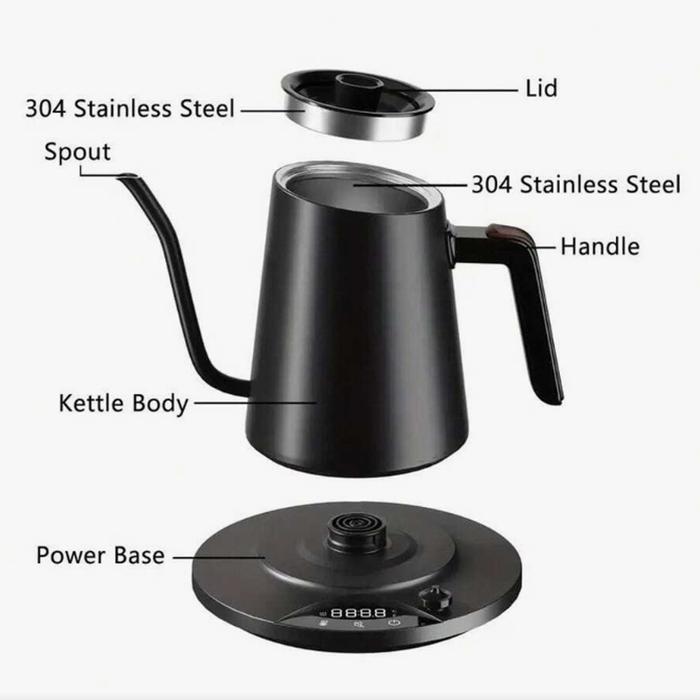 Teko Listrik Kopi Pemanas Air Leher Angsa Pour Over 1200W 900ml GOKIO GK90 PRO - Black