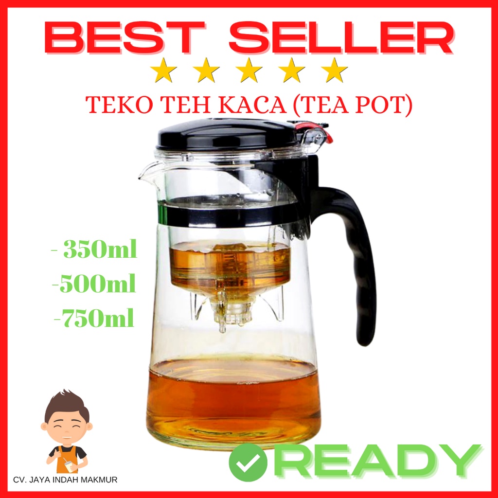 Teko Teh Kaca Teapot with Button Stainless mesh filter Teko Seduh Teh 350ml 500ml 700ml Tebal Bagus