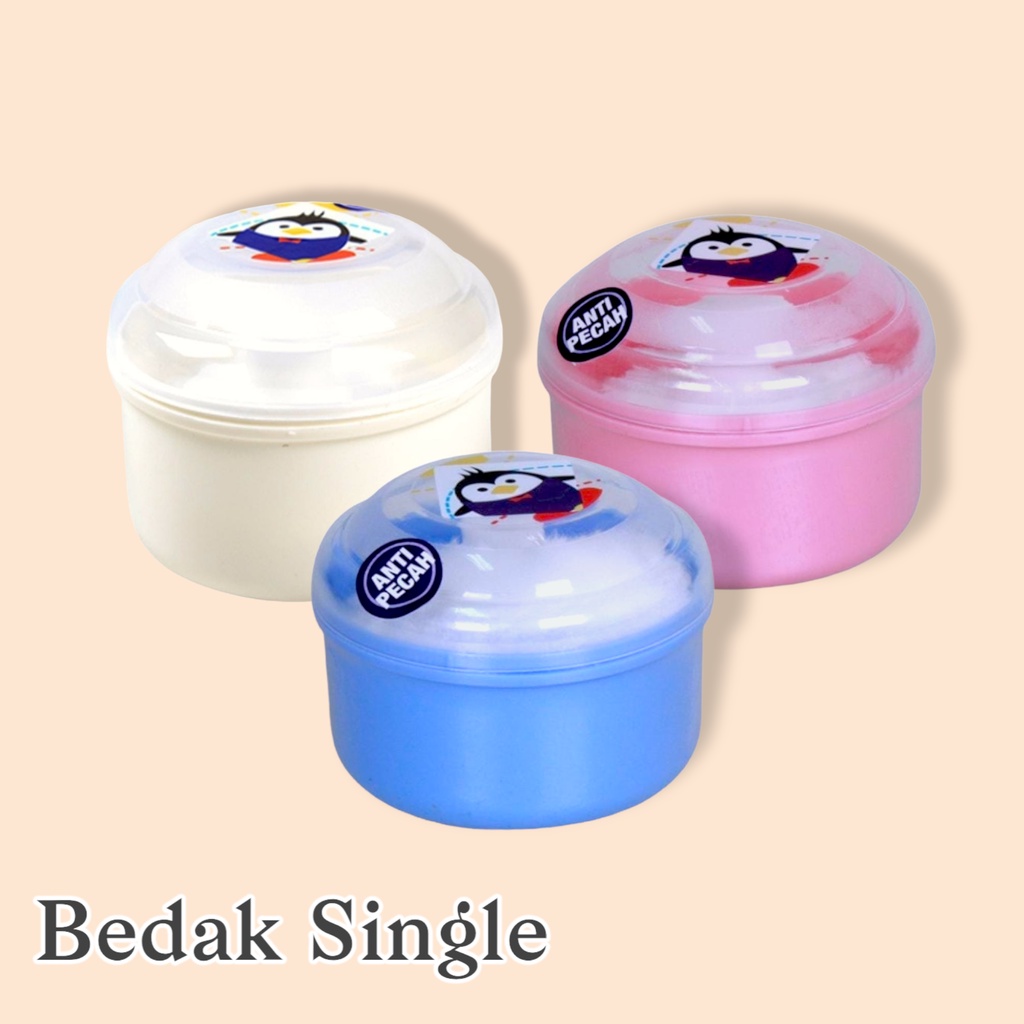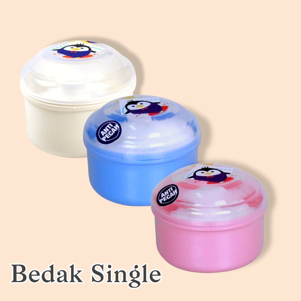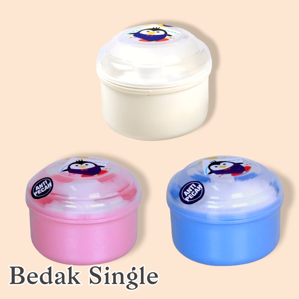 Tempat Bedak Bayi Kecil Anti Pecah Tanpa Sekat Skat Bedak Single + Puff (Satuan) Baby Powder Oval Case Bedak Tabur Bayi Baru Tempat Bedak Bubuk