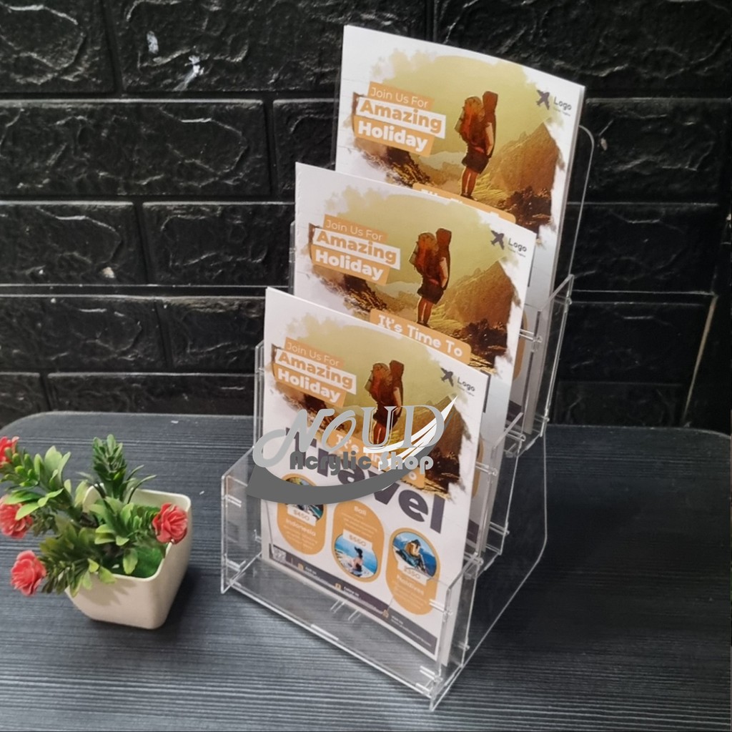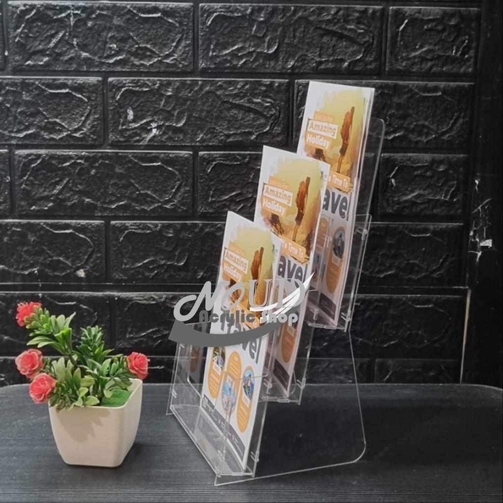 Tempat Brosur Akrilik A4 / Display Brosur Acrylic / Rak Brosur 3 Susun Knock Down