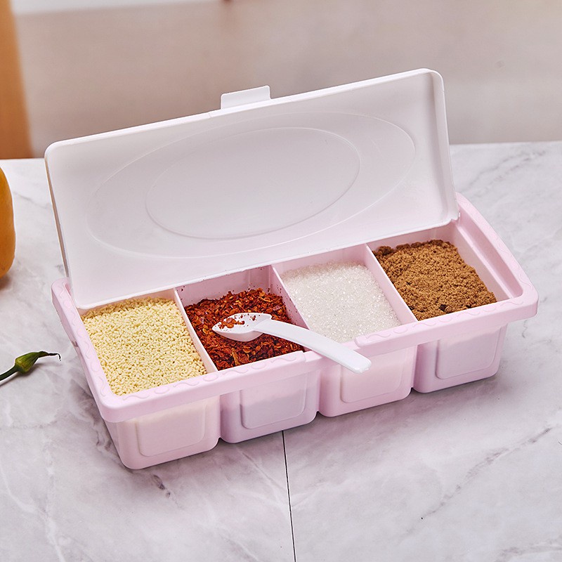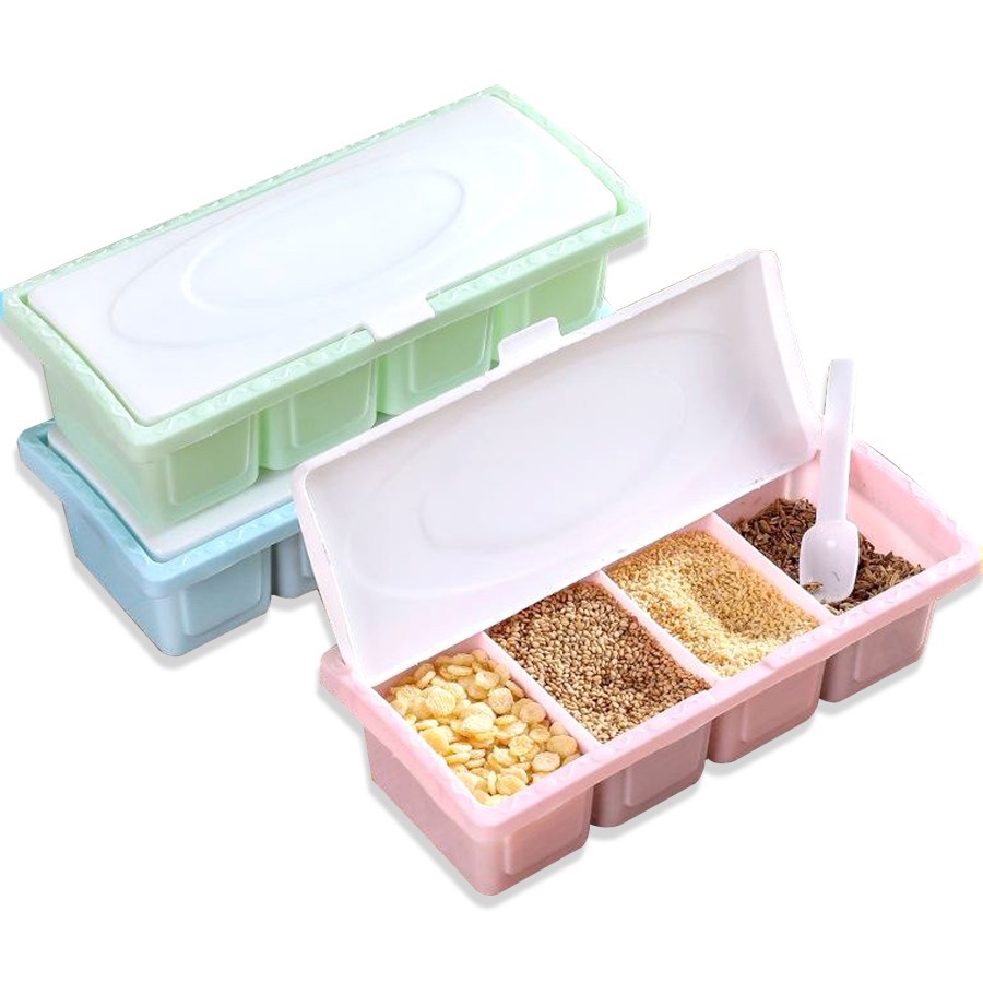 Tempat Bumbu Dapur 4 in 1 / Tempat Bumbu Serbaguna 4 Sekat / Tempat Bumbu Persegi Panjang 4 Sekat