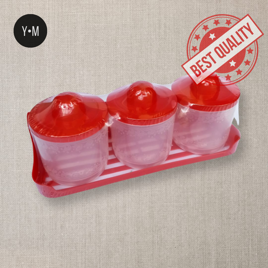 Tempat Bumbu Isi 3 Plus Tatakan Toples Kitchen Set/Tabung Transparan/Tempat Kopi Gula Teh