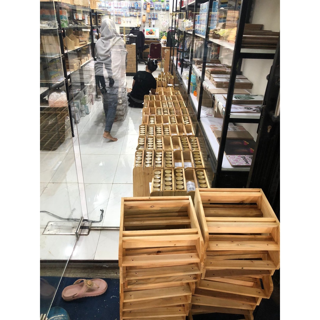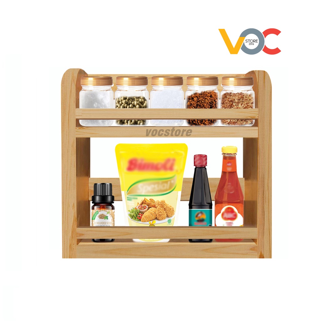 Tempat Bumbu Kayu 2 Tingkat dengan 10 Toples Dapat Sticker Bumbu / Rak kayu tingkat estetic